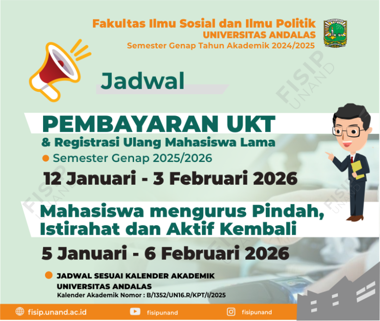 Mari berkenalan dengan para dosen yang terus memberikan dukungan bagi Fakultas Ilmu Sosial dan Ilmu Politik Universitas Andalas dalam upaya meningkatkan kualitas dan berinovasi melalui bidang dan keahlian masing-masing.