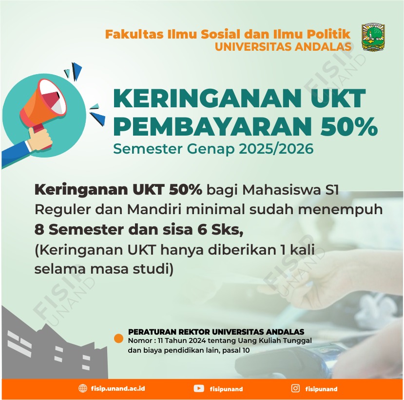 Fakultas Ilmu Sosial dan Ilmu Politik Universitas Andalas memberikan informasi terkait layanan akademik untuk mahasiswa pada Semester Genap Tahun Akademik 2025/2026: